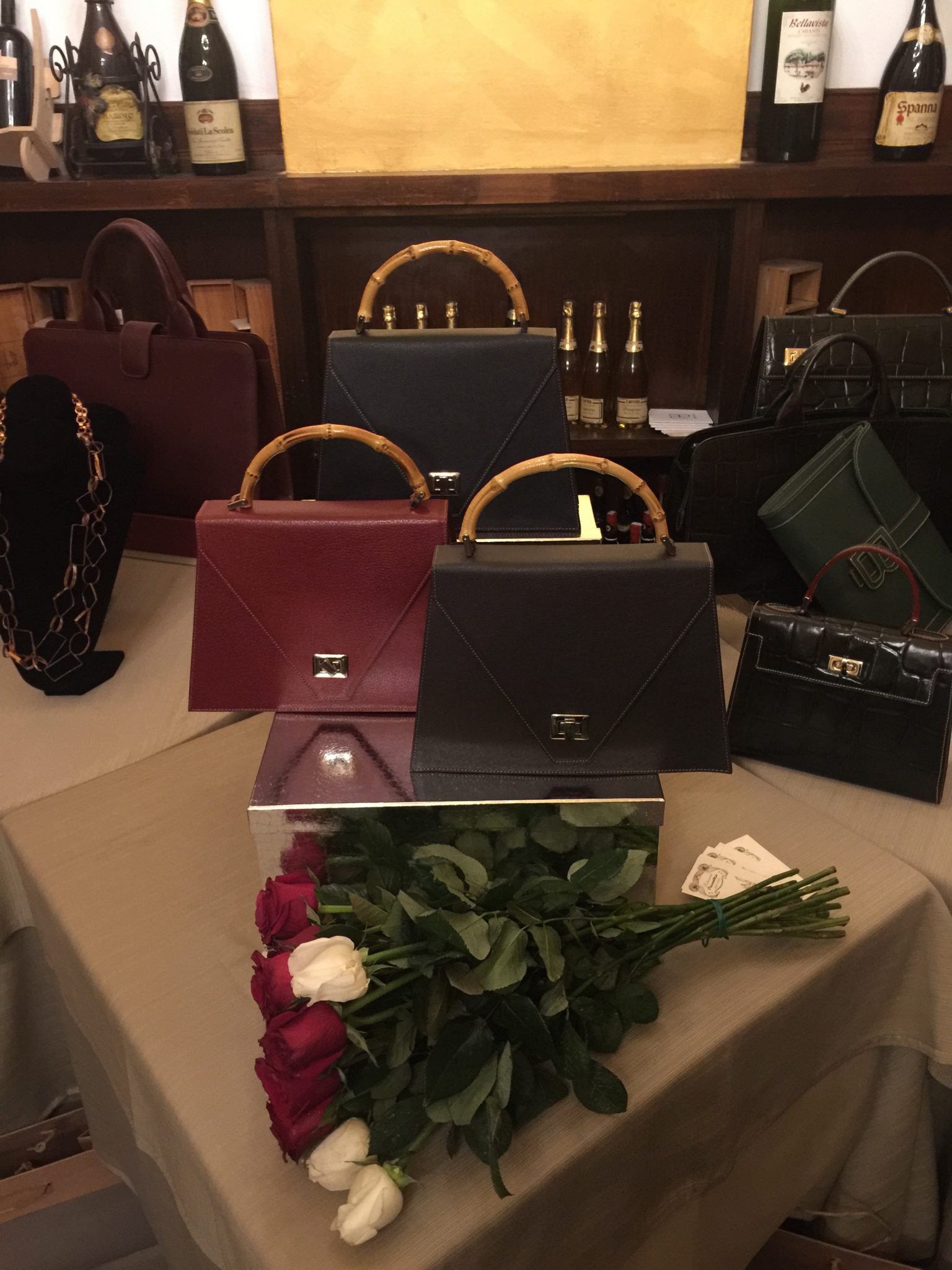 Splendida l’accoglienza, innanzitutto con la cordialità dell’elegantissima Romana Busani, poi con la sinfonia natalizia intonata dall’albero illuminato: alla sua base tanti pensierini per i tanti invitati. Ma le vere protagoniste sono loro: le borse in pelle disegnate da Romana. Dalle pochette ai borsoni da week end, diversificati in colori e formati, per avere sempre con sé l’accessorio giusto al momento giusto.