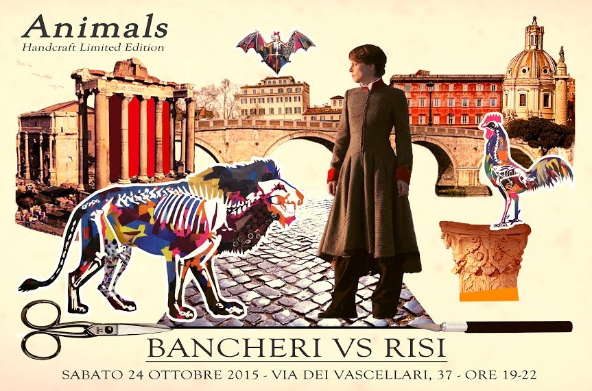 Una collezione che incontra la pittura, una mostra che conquista la moda: tra detti romani, cupole, sanpietrini, musica, liceo, accademie e anni di Lavoro, si rincontrano Livia Risi e Francesco Bancheri, due artisti romani. Il ponte è l’arte, l’amore per il “made in Rome”, perché entrambi non rinnegano le loro origini, bensì le caricano di valore e significato. Ognuno prende spunto dalla luce, dai colori, dall’energia, dalla vitalità e umanità palesata e a volte nascosta nelle viscere/ossa di una Roma vera che non smette mai di sorprendere. Tagliare, unire, incollare, chi lo fa con la colla, chi con il filo, è l’ulteriore ponte di questa collaborazione… tutta “animale”.